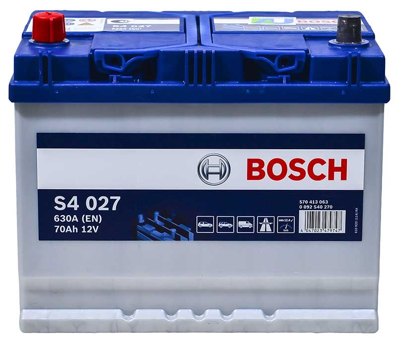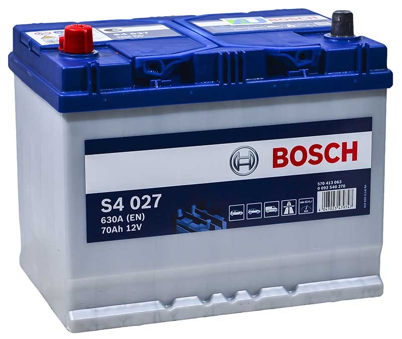 Аккумулятор автомобильный Bosch Asia Silver S4027 70 А/ч 630 A прям. пол. Азия авто (261x175x220) с бортиком