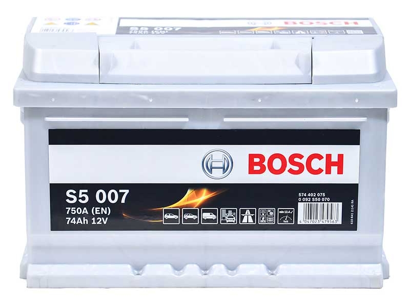 Аккумулятор автомобильный Bosch Silver Plus S5007 74 А/ч 750 A обр. пол. Евро авто (278x175x175)